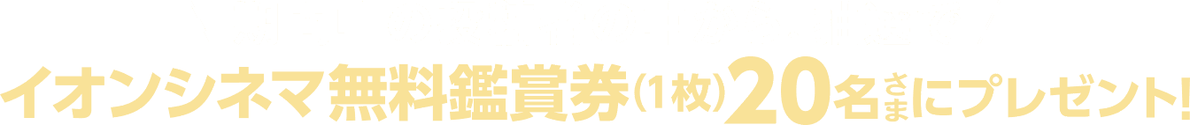 ※画像はイメージです。※全国のイオンシネマでご使用いただけます。※有効期限がございます。※一部ご利用いただけない作品や追加料金が必要な作品やお席がございます。※厳正なる抽選のうえ、当選者を決定し、チャット(旧DM)のご連絡をもって発表にかえさせていただきます。※当選賞品の交換、換金、返品はできません。